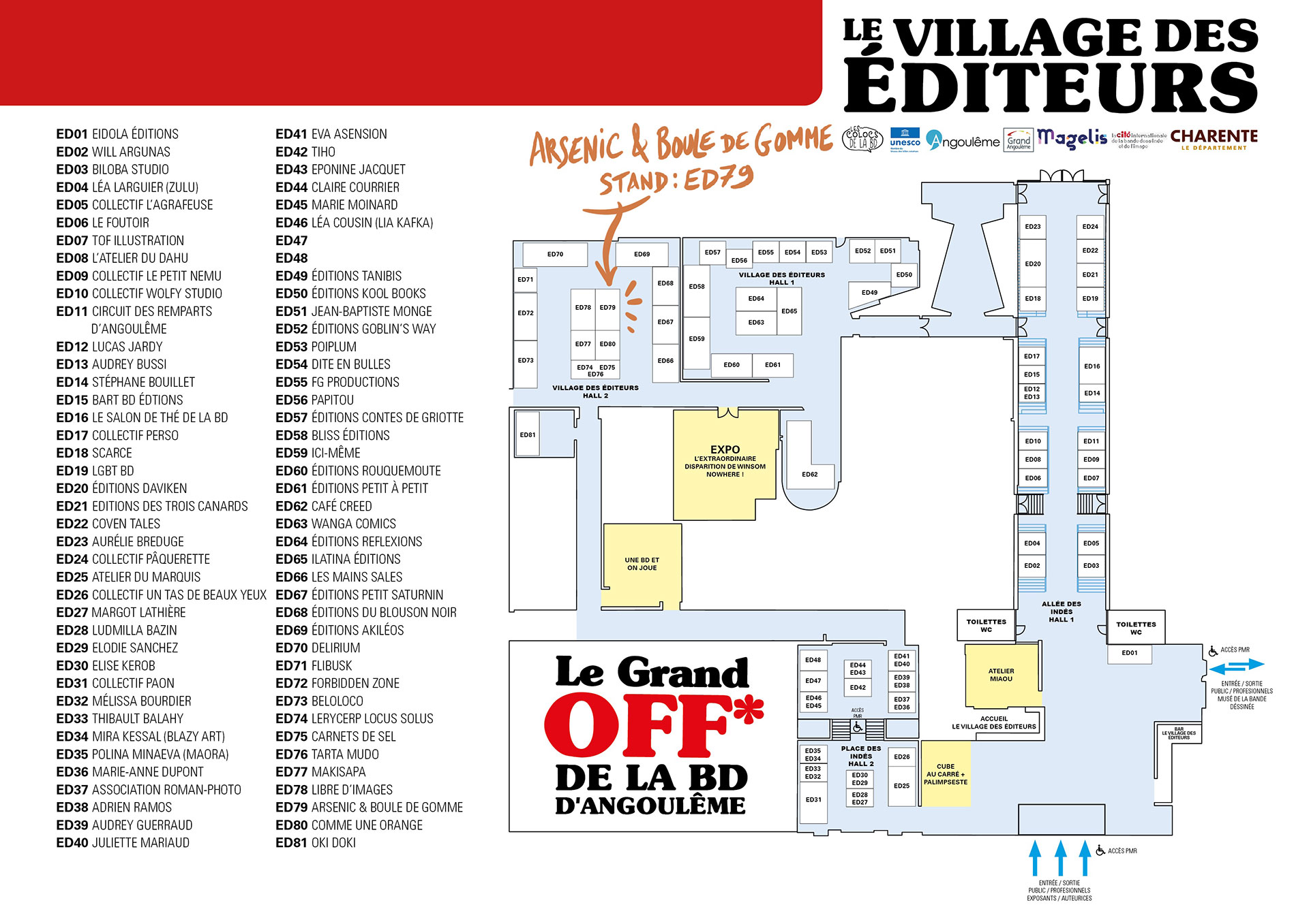 Infos pratiques : Vous pourrez nous retrouver du 29 janvier au 1er février, aux Chais Magelis (à côté du musée de la BD), sur notre stand Arsenic & Boule de gomme.